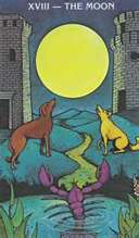 The Moon is always changing; but in a cyclical manner. It illumines the world indirectly by reflecting the light of the sun off its face to the Earth. It symbolizes the subconscious and those things that we might prefer to keep hidden or secret. Or even those things that you don’t even realize are there. It is also where we can connect to the collective consciouseness and all the deep wisdom of the ages. In Tarot is it a place where opposites are challenges and choices are made. The wolf and the dog are the same inside; it is the trappings of civility we have added to make dog what he appears. Detail is lost in the shadow of the night; the larger essesnce is what comes to the surface.